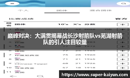 在这场备受瞩目的巅峰对决中,长沙射箭队与芜湖射箭队将在大满贯揭幕战中展开激烈的较量。两支队伍都拥有强大的实力和丰富的比赛经验,吸引了众多射箭爱好者的关注。比赛不仅是技术的比拼,更是心理的较量,选手们在赛场上将展现出他们的最佳状态。长沙队以其稳定的发挥和出色的团队配合而闻名,而芜湖队则以其灵活的战术和个体的突出表现而著称。此次对决将是两队实力的全面展示,值得期待。